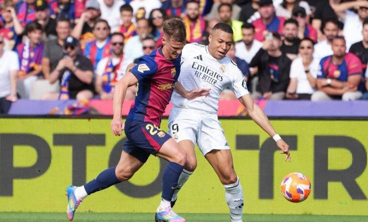 2025/26赛季西甲联赛第10轮的首回合西班牙国家德比在伯纳乌球场上演,欧冠15冠王皇马坐镇主场对阵死敌巴萨。上半场,姆巴佩越位进球被判无效,费尔明为巴萨扳平比分,贝林厄姆助攻帮助皇马再次领先。下半场,姆巴佩点球被扑,佩德里染红,亚马尔引发混乱,最终皇马2-1战胜巴萨,结束此前4连败,超越对手5分。